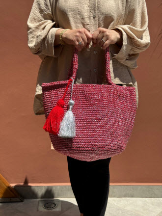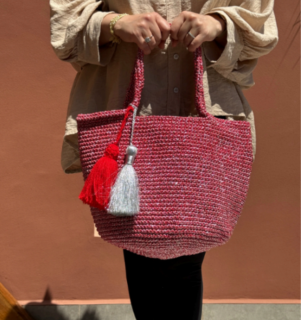 Sac en corde Maya fabriqué de manière artisanale par des femmes au Maroc, leur matière est très solide. Le volume généreux du sac Maya est un atout pour votre quotidien, il se porte aussi bien au bras qu’à l’épaule. Précommande pour les autres couleurs: bleu Majorelle, vieux rose (Marrakech), cuivre, vert royal, noir, moutarde, grège,…