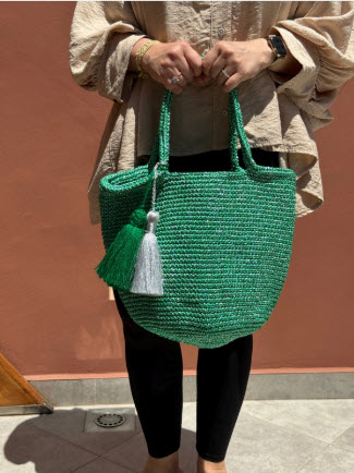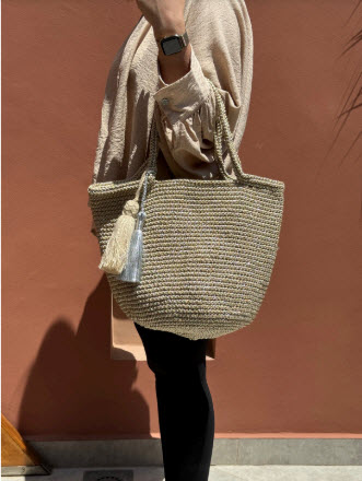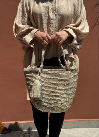 Sac en corde Maya fabriqué de manière artisanale par des femmes au Maroc, leur matière est très solide.