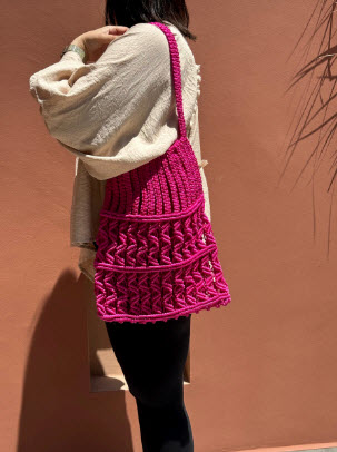 Sac en macramé Lola fabriqué de manière artisanale par des femmes au Maroc, leur matière est très solide.