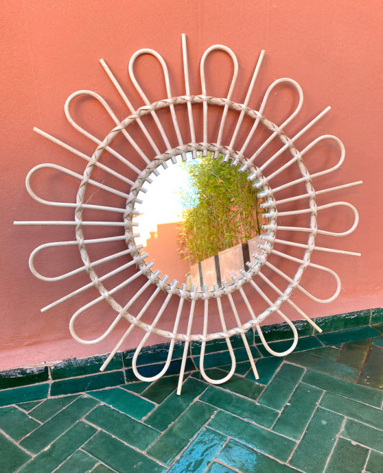 Ajoutez une touche de charme et d’authenticité à votre décor avec notre miroir Chams en rotin naturel. Fabriqué à la main avec soin par des artisans talentueux, chaque pièce incarne l’artisanat traditionnel et la beauté naturelle du rotin, offrant à votre espace une atmosphère chaleureuse et accueillante Parfait pour embellir un mur vide ou apporter de la lumière à une pièce sombre.