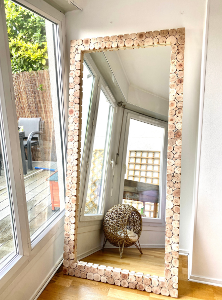 Chaque rondin de bois d’eucalyptus de notre miroir Reta est soigneusement taillé, poli et assemblé à la main pour créer une pièce unique en son genre. Le bois d’eucalyptus est réputé pour sa couleur riche et ses grains distinctifs, ce qui en fait un matériau parfait pour créer des pièces de décoration élégantes et durables. Le miroir Reta révèle la beauté naturelle du bois, ajoutant une touche de chaleur et d’authenticité à n’importe quelle pièce de votre maison. Il offre bien plus qu’une simple fonctionnalité : c’est un véritable élément de décoration qui attire tous les regards. Sa taille imposante et son design épuré en font un point focal saisissant dans n’importe quelle pièce, qu’il s’agisse du salon, de la chambre à coucher ou même de l’entrée. Ajoutez une touche de sophistication et d’élégance à votre décor avec ce miroir artisanal exceptionnel.