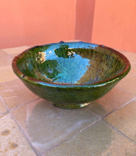 Veuillez noter qu’aucune pièce n’est parfaite: fissures, coulures, bosses, asymétries, etc font partie intégrante des poteries de Tamegroute. La couleur verte diffère à chaque objet, de clair à foncé, et peut parfois ne pas recouvrir la pièce en totalité, laissant ainsi découvrir l’argile. Ces jolis bols vous servirons à prendre votre petit déjeuner ou encore pour vos apéritifs etc…